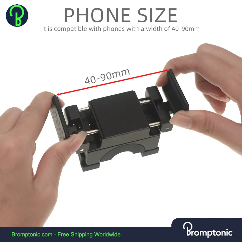 Made from durable 7075 aluminum alloy, plastic, and rubber, it snugly secures phones between 4-9cm (1.57-3.54inch) in width. The package includes one mount and two rubber rings (excluding phone or other items).