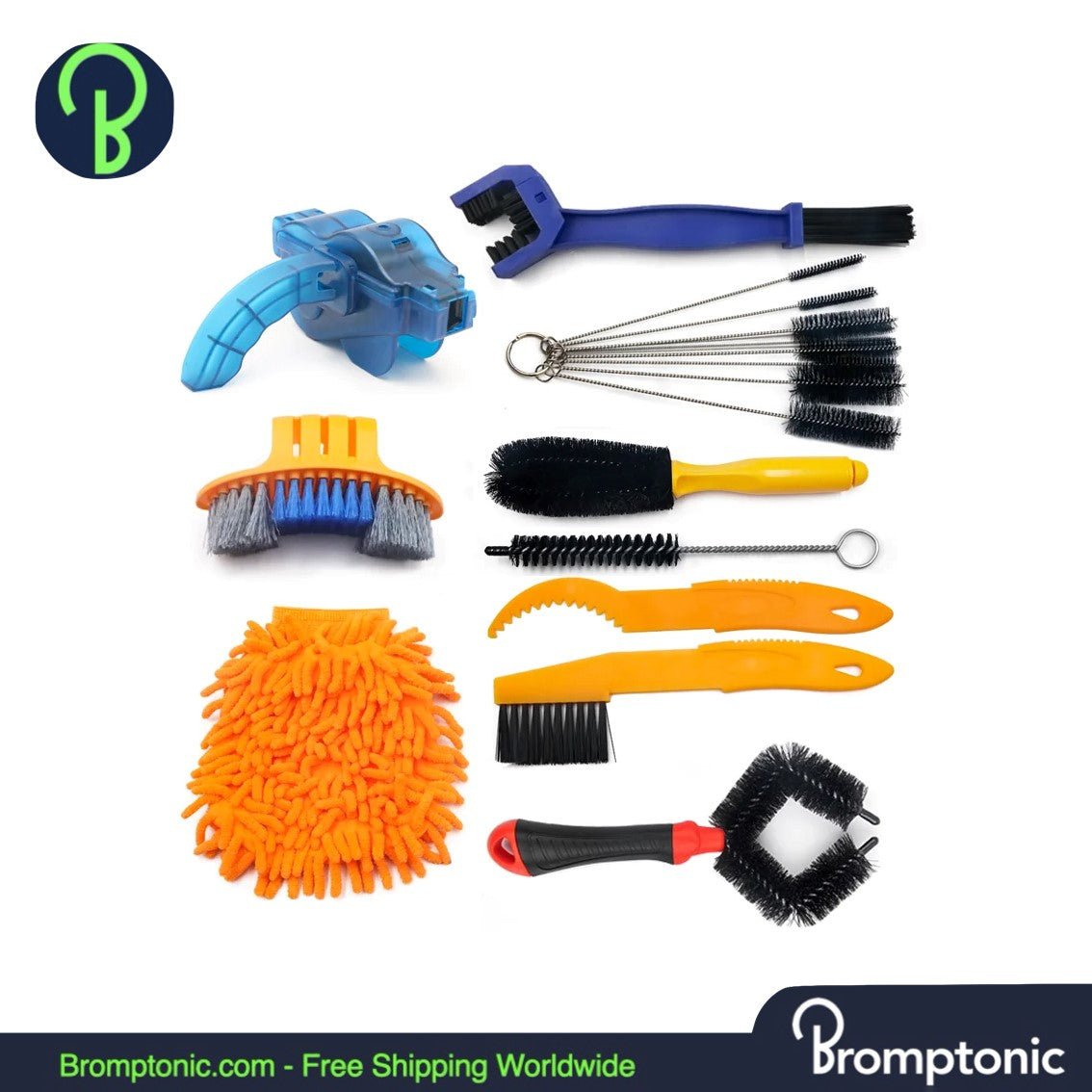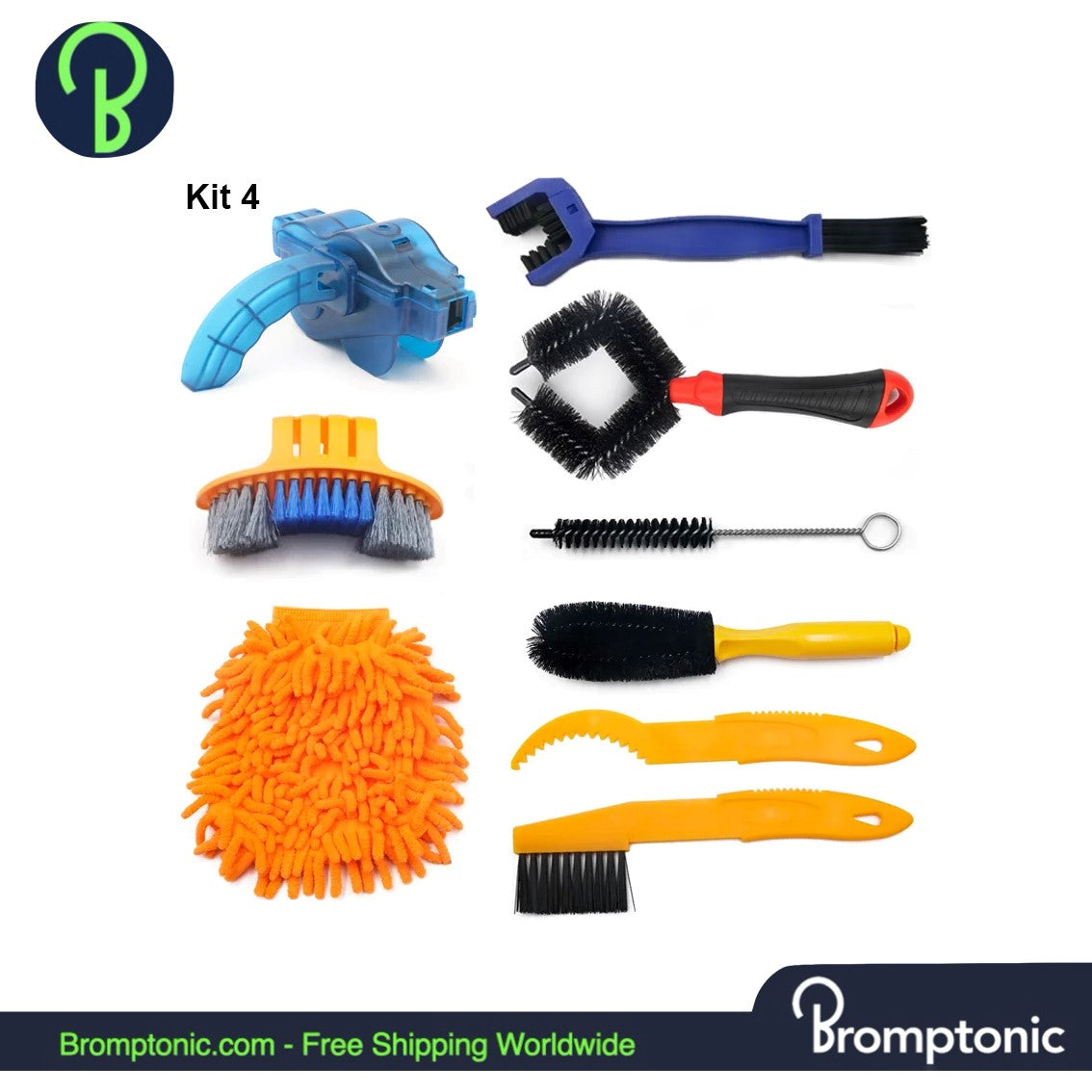 Includes: Chain scrubber, frame and gear brushes, tire brush