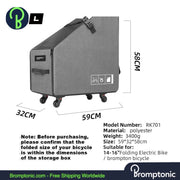 Effortlessly transport and protect your Brompton folding bike with the Brompton Folding Bike Storage Box with Quick Release Wheel. Designed for ease and convenience, this compact yet sturdy storage box is perfect for keeping your Brompton safe during transport or storage. Constructed from durable polyester material, it offers full protection against dust, water, and road debris, ensuring your bike remains in pristine condition.