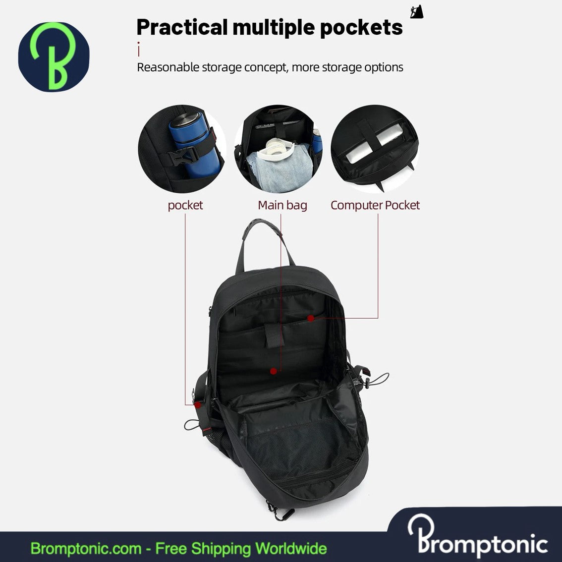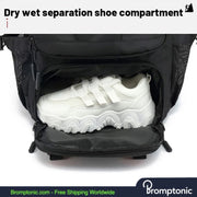 • Organized Storage: Dedicated slots for laptop, shoes, and bottles or gear