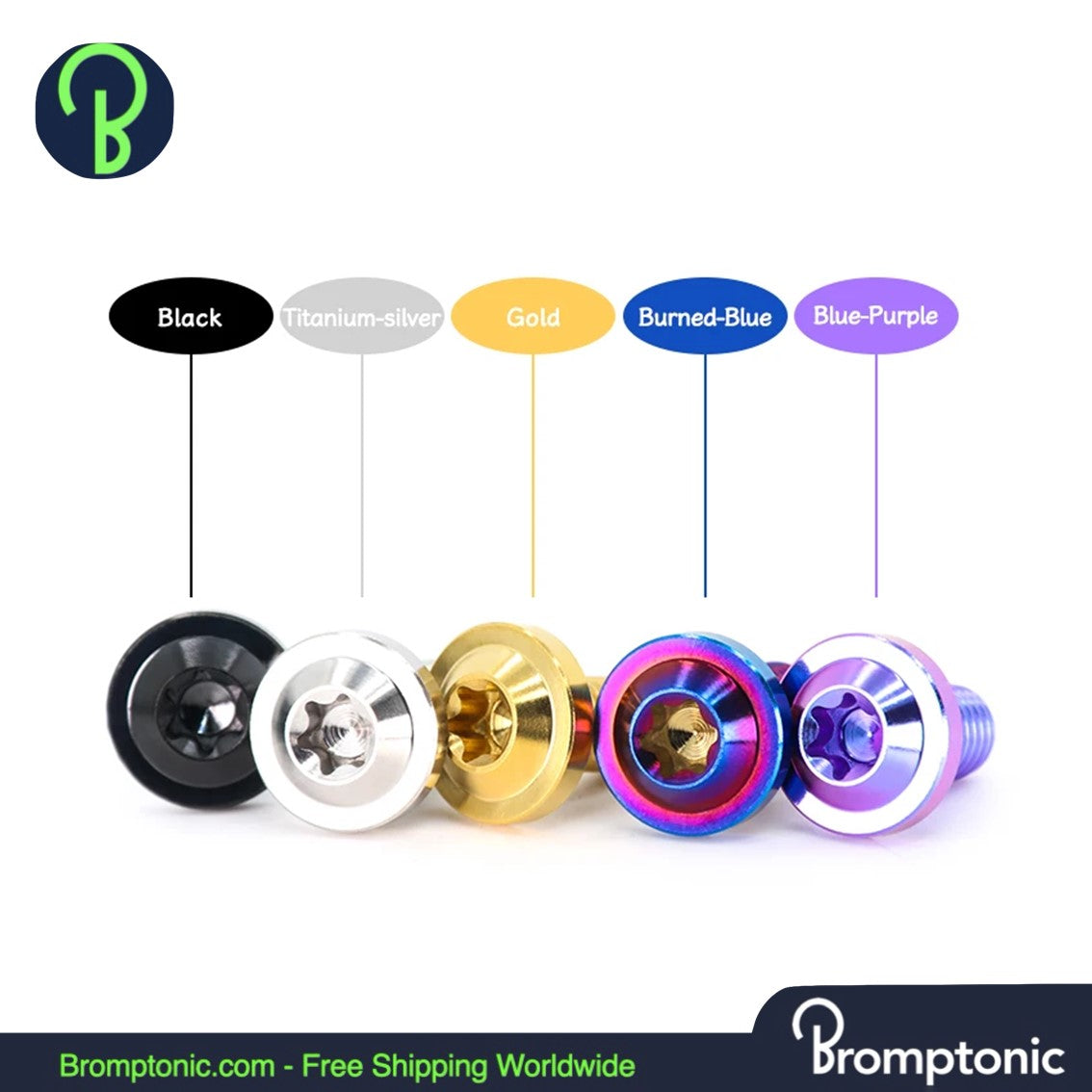 The Bromptonic Titanium Bolt is the perfect solution for Brompton owners who prefer not to use a front carrier. Designed to cover the carrier block hole, this premium titanium bolt (TC4/GR5) provides a clean and polished finish while protecting the exposed area from dirt and debris.