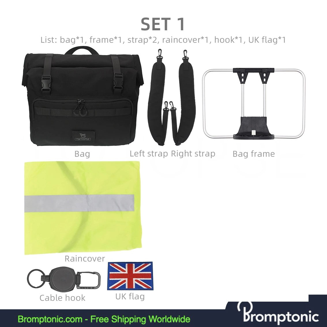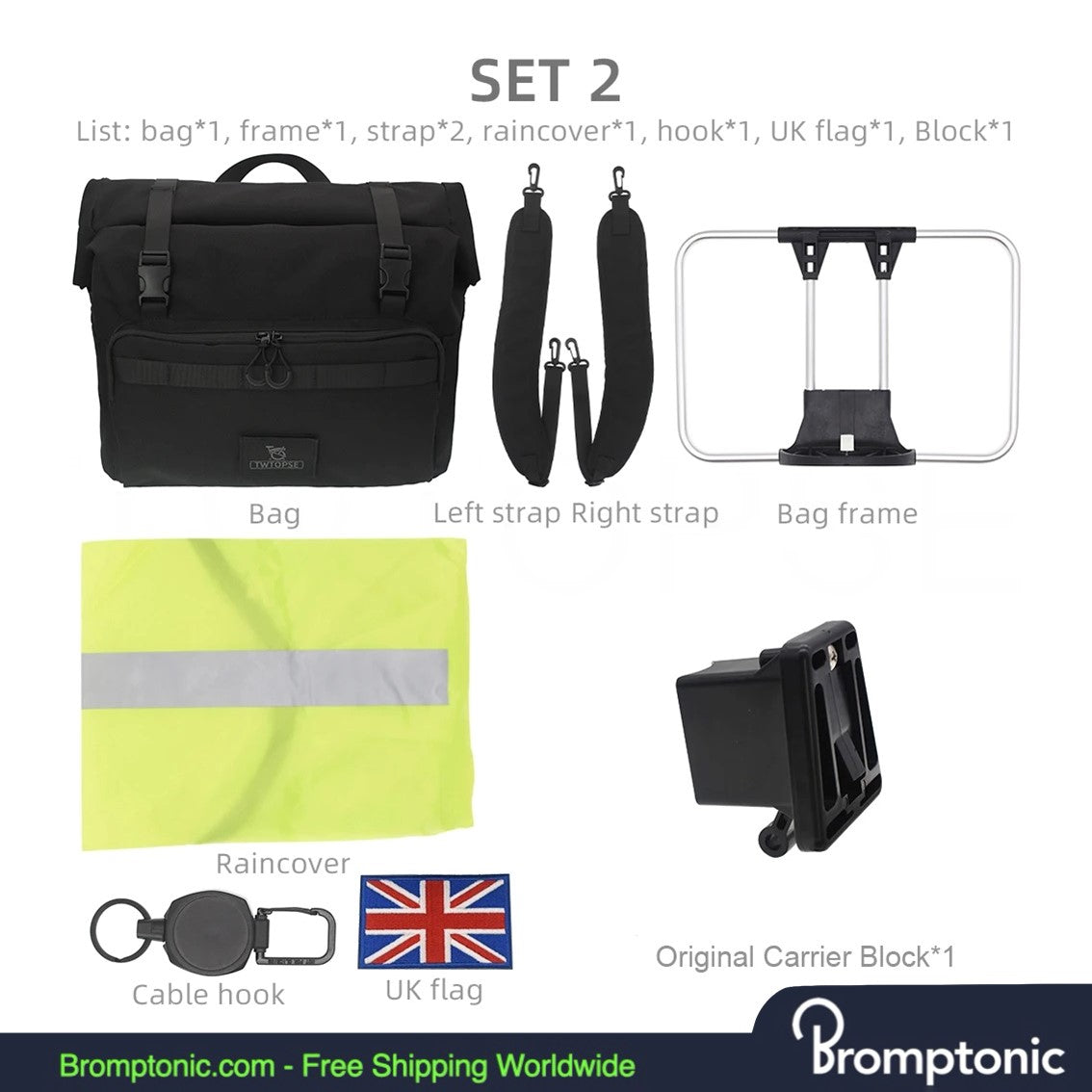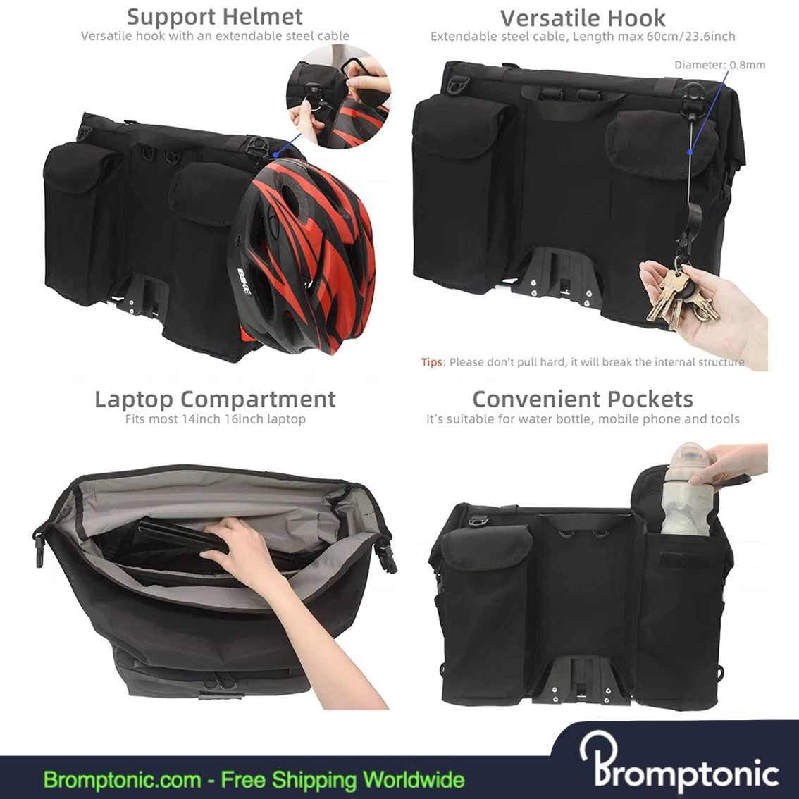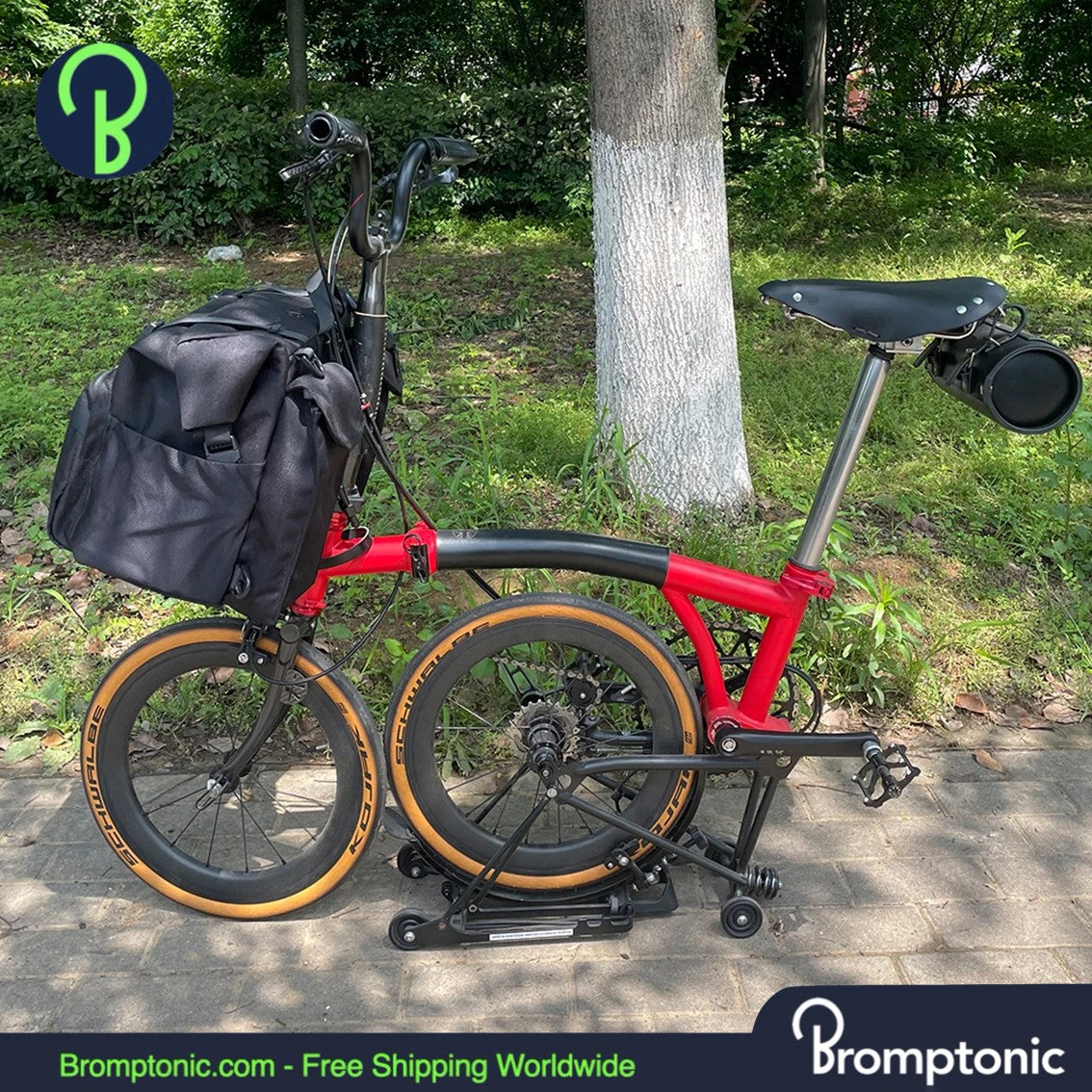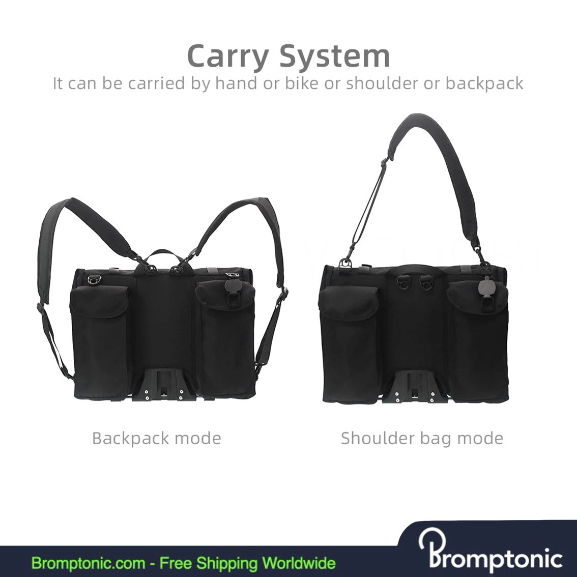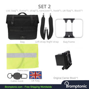 This 25-liter roll-top front bag is designed specifically for Brompton folding bikes, offering a perfect balance of style, functionality, and versatility. It attaches directly to your Brompton’s front carrier block and easily transforms into a backpack or shoulder bag when off the bike.
